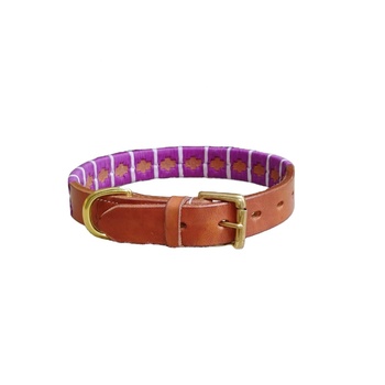 Hardware de latón macizo de alta calidad 25mm/1 pulgada más ancho Polo cuero perro Collar púrpura y blanco patrón de animales para entrenamiento y caminar