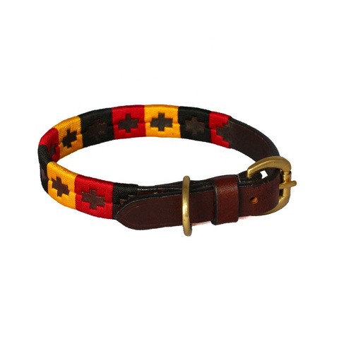 Moda 25mm/1 pulgada de ancho Polo cuero perro Collar Animal patrón encaje decoración latón sólido Hardware cosido a mano correas para mascotas