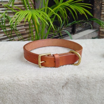 Collar de perro de cuero de vaca americano marrón tostado ecológico de alta calidad, hebilla de latón macizo de 6mm de espesor, de anillo en D remache, correa para mascotas